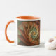 Tasse mit "Tropicanna" ein abstrakter Entwurf durch Susan Wallace. Copyright © 2009, Susan Wallace. Abstrakter Entwurf in den Schatten der Orange und des Grüns gibt den Eindruck einer tropischen Blume im Dschungel. Voller Umgriffsentwurf.