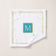 Tropenblaue und goldene Blätter und Set mit einem Monogramm Badetuch. Dieses außergewöhnliche Design umfasst Blätter von Split Leaf Philodendron (Monstera deliciosa) oder Schweizer Käse Pflanze und Palmen Blätter in blau mit goldenen Kontur . Das Waschlappen hält Ihr Monogramm.