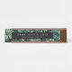 Das Tropical Chic Schreibtisch-Typenschild enthält zwei Zeilen Text für Ihren Namen und Titel oder Ihren Firmennamen. Persönlich mit Ihren Details in modernen, weißen Schriftzeichen auf einem schwarzen Rechteck Set auf einem dramatischen Hintergrund von Dschungelbotanischen Blätter und Blattwerk.