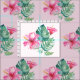 Gemusterte tropische, blumengeschmückte Stoffe mit rosa Hibiskus-Blume und üppig grünen Monstera-Blätter auf einem hellrosa Hintergrund. Trendy rosa und grüne Farbpalette ist perfekt für Ihr nächstes Kunsthandwerk oder Dekorprojekt. Um die Größe dieses Musters zu ändern, klicken Sie einfach auf "Anpassen" und passen Sie die Größe der Kacheln an.