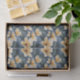 Ein lebendiges Muster mit tropisch gelben Hibiskus-Blume mit üppig grünen Blätter auf einem strukturierten blauen Hintergrund. Dieses Muster zeigt kühn und lebendig gelbe Hibiskus-Blume mit aufwändigen grünen Blätter Set vor einem strukturierten blauen Hintergrund. Die Kombination aus tropischen Blumen und künstlerischen Texturen schafft ein exotisches, auffälliges Design. Ideal für Geschenkgutscheine, Entziehungskunst oder andere Handwerkskunst.