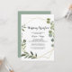 Dieses tropische grüne Blätter lädt zum Hochzeitsfrühstück ein. Freuen Sie sich auf einen Tag nach dem Hochzeitsfrühstück. Das Design besticht durch handbemalte grüne Blätter, die einen goldenen geometrischen Rahmen schmücken.