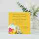 Erneuerende Gelübde, Jubiläumsfeier Einladung mit hawaiianischem Blumendesign. Gelbgelb mit weißem Text und einem großen Strauß aus Plumeria, Hibiskus und Paradies in der unteren Ecke. Quadratische Karten können abgerundete Ecken haben, und Schriftart sind modern, Handschrift mit Großbuchstaben gedruckt. Geben Sie bei Bedarf einen gesonderten Absatz für Empfang-Informationen ein. Das Gegenteil ist massiv dunkelrosa.