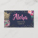 Tropical Pink Gold Ananas Navy Blue Business Card