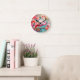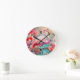 Tropisch rosa Flamingo mit Blume-87361 Runde Wanduhr