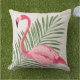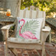 Tropisch rosa Flamingo und Palm Blätter Kissen