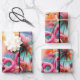 Tropisch rosa Flamingos Palmen Trees Sun Decoupage Geschenkpapier Set