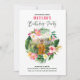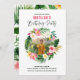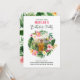 Helle, farbenfrohe tropische Blätter Foto Geburtstagsparty einladen. Ein modernes, helles Aquarelldesign. Tropische Blumen, Früchte und Flamingos. Teil einer hellen, tropischen Sammlung.