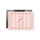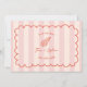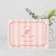 Handgezeichneter Rahmen mit Text- und Liniengrafik-Muschelbild über rosa Streifen Hintergrund. Personalisieren Sie das Foto auf der Rückseite.