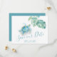 Verkünden Sie, dass Sie verlobt sind mit meinen tropischen Save the Date Einladungen mit Rett Our Date in einem trendigen Skript Typografie-Stil, die das Aussehen der Handschrift erinnert. Diese einfache Karte zeigt meine originale Aquarellmonstera-Vegetation und tropische Meeresschildkröte in Blautönen, Türkis und Grün. Platz für Ihre Namen, Hochzeitstag und Hochzeitsort. Die Karten werden in eine solide, türkisfarbene Farbe umgetauscht. Ideal für tropische Karibik, Hawaii, Strand und Hochzeiten in Urlaubsort. Um die passende Hochzeitssuite zu sehen, besuchen Sie DoTellABelle auf Zazzle.