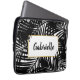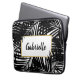 Ein gewagtes und modernes Palmenblattmuster auf einem Laptop-Ärmel, das sich perfekt für den stilvollen und trendigen Strandliebhaber und das Leben auf der Insel eignet, der mit Ihrem Namen oder beliebigen Texten personalisiert sein kann. Ihr Laptop wird sich wie im Urlaub fühlen!