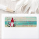 Gnome mit Kiefernästen, Süßigkeiten und Schneeflocken im Hintergrund. Ein elegantes und raffiniertes Design. Passen Sie Ihre Namen und Adressdaten an.