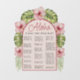 Eine alphabetische tropische Sitzkarte, geeignet für eine hawaiianische Hochzeit / ein hawaiianisches Luau. Der Text befindet sich in einem rosa Bogen mit bordeauxroten Rändern. Um den Bogen herum gibt es tropische Blume und Blätter - Monstera und Palmen Blätter und rosa Hibiskus - in Aquarellfarben gemalt. Der Titel "Aloha" ist in Handschrift geschrieben, in einem bordeauxroten ähnlich der Mitte der Hibiskus-Blume, die Erholung des Textes ist schwarz (alle Kappen). Die tropischen Blätter und die Blume sind Aquarellfarben, die von laomao_art aus Pixabay gemalt wurden und für kommerzielle Nutzung frei sind.