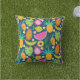Es handelt sich um niedlich lebendige tropische Früchte mit Ananas, Papaya, Drachenfrucht, Mango, Banane, Wassermelone und Zitrone mit tropischen Blätter im dunklen Hintergrund. Es ist ein großartiges Kissen im Freien für die Sommerzeit oder das Party im Garten