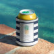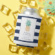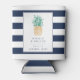 Gedenken Sie Ihre Hochzeit im Insel-Preppy-Stil mit dieser Gastgeschenk Hochzeit kann Kühler, mit einer grünen und goldgelben Ananas-Abbildung mit den Namen des Paares, Hochzeitstag und Lage in Marineblau. Ein marineblau-weiß gestreifter Hintergrund rundet dieses Design ab, perfekt für Hochzeiten auf Hawaii, Newport, Insel oder im Süden, wo die Ananas die Oberhand behält!