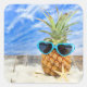 Tropische Ananas mit Sonnenbrille Quadratischer Aufkleber