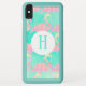 Tropische trendige Ananas gemusterte rosa Flamingos und Meer grün mit Monogramm Telefonzelle.