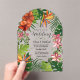 Setzen Sie mit dieser atemberaubenden, klaren Acryl-Hochzeitseinladung einen lebendigen Ton für Ihre Insel-Feier. Mit handgemalten Wasserfarben hawaiianischen Blumen und Blättern, darunter leuchtender Hibiskus und exotische Paradiesvögel, ist dieses moderne, bogenförmige Design perfekt für eine Destination-Hochzeit, eine Strandzeremonie oder ein tropisches Event. Der elegante botanische Rahmen umgibt Ihre persönlichen Details für einen Look, der sowohl künstlerisch als auch elegant ist.