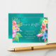 Blauer aquamariner Unterwasserhintergrund mit Blumenbouquets im tropischen hawaiianischen Stil für ein modernes Strandbad im Sommer, Aloha, Ozean, Meer, Küste, Ziel-Babydusche personalisierte Weinkarte für die Tombola.