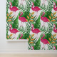 Tropische Blätter, Blume, rosa Flamingos Muster Tapete
