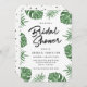 Das Brautparty mit tropischem Brautparty lädt zum Verweilen ein. Das moderne Interieur besticht durch einen weißen Hintergrund, einen stilvollen Schriftart mit Pinselskripten und tropische Blätter, die an die Einladung grenzen.