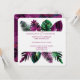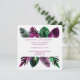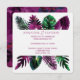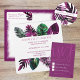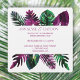 Tropisches Grün und wilde Beeren rosa Insel Blätter Hochzeitseinladung ist vielseitig für Küsten-, Strand Hochzeitsthemen. Violett- und grüne Monstera-Blätter & Farne lassen sich leicht verkleinern und verschieben. Übertragen Sie lebendige tropische Pflanze auf eine Vielzahl anderer Kartenformen.