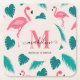 Tropische Blätter Hot Pink Flamingo Modern Monogram Square Paper Untersetzer