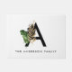 Tropische Blätter Imitate Gold Foil Letter A Monogram Doormat | Boho Monogramm Doormat mit tropischen Aquarellfarben-Blätter mit Imitaten goldenen Folienakzent. Dieser tropische Schlafsaal ist ideal für den Sommer. Dieses Design ist in anderen Artikeln verfügbar.