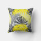 Tropische Blätter in Gelb und Grau Kissen