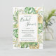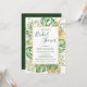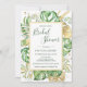 Diese moderne Tropendusche aus Braut und Gold mit grünen und goldenen Palmen, Philodendron und Farn-Blätter. Ein eleganter Goldrahmen hebt den dunkelgrünen Text hervor. Gold-Spritzer betonen dieses exotische botanische Design und bringen ein wenig raffinierte Launen in die Einladung. Diese Insel-Oase lädt zu jedem Outdoor-, Strand- oder tropischen Brautparty ein.