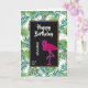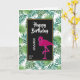 Eine Geburtstagskarte mit einem grünen tropischen Blätter und einem schwarzen Rahmen mit einem goldenen Rahmen oben. Eine rosa Flamingo-Abbildung fügt eine Touch von Launen hinzu.