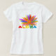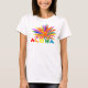 Aloha ist in lustigen Rot-, Orange-, Gelb-, Grün- und Blautönen geschrieben. Eine große helle Blume mit blauen, grünen, gelben, lila, orangen und braunen Blütenblättern verleiht dem Urlaubsgefühl auf der Insel einen besonderen Reiz. Original Artwork von TamiraZDesign.
