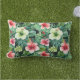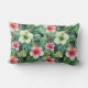 Dieses Akzent-Kissen im Freien wird in einem hübschen, tropischen Blume-Druck gezeigt. Passen Sie dieses Objekt an oder kaufen Sie, wie es ist. Lizenziertes Bild