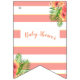 Eine helle tropische Blume Design auf bunting, dass personalisiert sein kann. Fügen Sie Ihre Feier hinzu oder verließ Sie als Kinderdusche. Die Blume sind mit einem Set auf einem rosa und weißen Korallenriff mit einer subtilen gelben Linie versehen, um das tropische Ambiente zu unterstreichen.