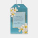 Hübsche botanische Aquarell frangipani plumeria Hochzeitsgeschenk Tags Aquarell Blume mit Goldrahmen auf aqua blau. Schöne tropische Hochzeitsmarken, ideal für eine botanische oder tropische Blume und eine Hochzeit zum Thema Strand. Personalisieren Sie Ihre persönlichen Daten. Weitere passende Artikel sind ebenfalls verfügbar. © Original florale Aquarellmalerei Kunst und Design von Sarah Trett für www.mylittleedenweddings.com