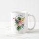 Eine helle und farbenfrohe Tasse mit Aquarellfarben-Hibiskus, Frangipani, Plumera, Orchideen, Palmen-Blätter, Bananen-Blätter und anderen tropischen Blumen-Akzenten mit einem Toucan. Die Texte auf dieser Tasse sind vollständig anpassbar. Ähnliche Artikel sind verfügbar.