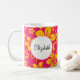 Eine Auswahl an tropischen Blume in hellgelb überlagert warmes Rosa, um diese Tasse zu einem perfekten Start in den Tag zu machen. Der benutzerdefinierte Name oder die Nachricht sticht in einem weißen Kreis hervor. Erhältlich in alternativen Farben mit passenden Produkten.