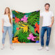 Tropische Blume und Palmenblatt Hawaiisch bunt Fleecedecke