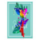 Dieses farbenfrohe Design besticht durch tropische Pflanze, Blume und einen bunten Papagei. Bianca Van Dijk von Pixabay