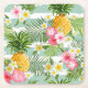 Tropische Blumen u. Ananas auf aquamarinen Rechteckiger Pappuntersetzer