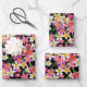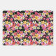 Tropische Plumeria-Blume in Rosa, Gelb und Weiß auf schwarzem Hintergrund sind auf diesen Verpackungspapierblättern zu finden, die für jeden Anlass Spaß machen.