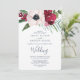 Diese Tropische Brise Hochzeitskarte ist ideal für eine elegante Frühjahr- oder Sommerhochzeit. Das Blumendesign mit roten, bordeauxroten, rot-weißen Blume auf einem Eukalyptusbett im Wasser und tropischer Vegetation mit entspanntem hawaiianischem Ambiente.