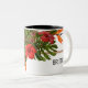 Die Tasse ist ein hübsches Geschenk für die Braut, mit einer üppigen tropischen Blume und botanischem Blattwerk in Aquarellfarbe, das auf den links "Braut" und rechts unten ihren Namen trägt. Entworfen, um unsere Tropical Breeze Collection zu entsprechen. Karo aus allen Ansichten, um zu sehen, wie sich die Blume und Blätter um die Tasse wickeln - einfach wunderschön.