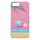 Eine Illustration tropischer Cocktails in hellrosa und blau auf einem Strandhintergrund mit rosa Himmel und mit Palmblättern und Möwen dekoriert dieses iPhone 7 Plus Case, das uns an warme, sonnige Ferien erinnert.