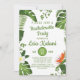 Personalisierter Name der tropischen hawaiischen Themasommer-Junggeselinnen-Abschieds-Einladungen in der eleganten Skriptbeschriftung. Eingefaßt mit grünen botanischen, tropischen Palmblättern mit Paradiesvogel und Blumen Elfenbein Plumeria (Frangipani). Rückseite hat zusammenpassenden festen grünen Hintergrund, der zu jeder möglicher Farbe geändert werden kann. Verwenden Sie besonders anfertigen es Knopf, um alles zu ändern - Schriftartarten, -größen, -farben oder -platzierung. Wir haben die koordinieren, tropische Themahochzeitsversorgungen und Dekor in unserem Zazzle.com/angela65*-Geschäft.
