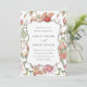 HINTERGRUNDFARBE ÄNDERN | Diese Hochzeitseinladung weist ein farbenfrohes Muster auf, das mit rosa, rosa, grünen und roten Fantasy-Blume an einem dekorativen Rahmen geschmückt ist.