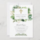 Tropische Foliage Gold Cross Boy Taufe Einladung