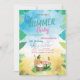 Diese Einladungen sind mit Blätter aus Palmen mit tropischen Früchten auf blauem Hintergrund gestaltet. Diese Einladung ist einfach an Ihre Veranstaltung angepasst, indem Sie einfach Ihre Details hinzufügen.