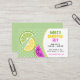 Diese personalisierten Visitenkarten verfügen über farbenfrohe, in Scheiben geschnittene Limetten, Zitronen und Wassermelonen auf einem spielerischen grünen Polka-Dot-Hintergrund und sechs Textbereiche, die individuell auf Ihren Firmennamen, Ihre Betriebsstunden, Ihren Standort und Ihre Website-Adresse zugeschnitten werden können. Die hellgrüne, gelbe und rosa Farbpalette verleiht diesem fröhlichen Design ein tropisches Sommerambiente. Nutzen Sie diese Visitenkarte, um Ihre Markenidentität zu etablieren und Ihr tropisches Café, Ihre Saft-Bar oder Ihr Smoothie-Geschäft zu fördern. Ändern Sie die sechs Textbereiche, um eine einfache Visitenkarte zu erstellen.