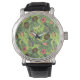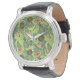 Tropische Fruchtskizze auf grünem Muster Armbanduhr